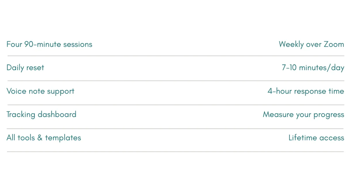 It's not overwhelming. You're not adding 17 new habits or overhauling your entire life. You're doing 7-10 minutes of daily practices and meeting once a week. That's it.